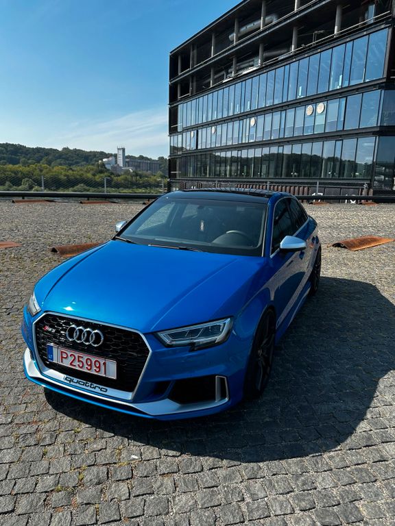Der Audi RS3 ist ein Hochleistungsmodell aus dem Hause Audi, das sich durch erstklassige Technik und sportliche Performance auszeichnet. Mit seinem auffälligen Design, das die typische Audi-Elemente mit aggressiven Akzenten kombiniert, zieht der RS3 alle Blicke auf sich. Unter der Haube begeistert der RS3 mit einem hochdrehenden 2,5-Liter-TFSI-Fünfzylinder-Benzinmotor, der eine beeindruckende Leistung von 400 PS (294 kW) und ein maximales Drehmoment von 480 Nm bietet. Das Zusammenspiel von Motor und 7-Gang-S-Tronic-Doppelkupplungsgetriebe ermöglicht es dem RS3, in nur 3,8 Sekunden von 0 auf 100 km/h zu beschleunigen. Zusätzlich bietet das quattro-Allradantriebssystem herausragende Traktion und Fahrstabilität, insbesondere in Kurven und bei unterschiedlichen Wetterbedingungen. Die Sportfahrwerksregelung sorgt zudem für eine perfekte Abstimmung zwischen Komfort und Fahrdynamik, sodass der RS3 sowohl auf der Autobahn als auch auf der Rennstrecke überzeugt.